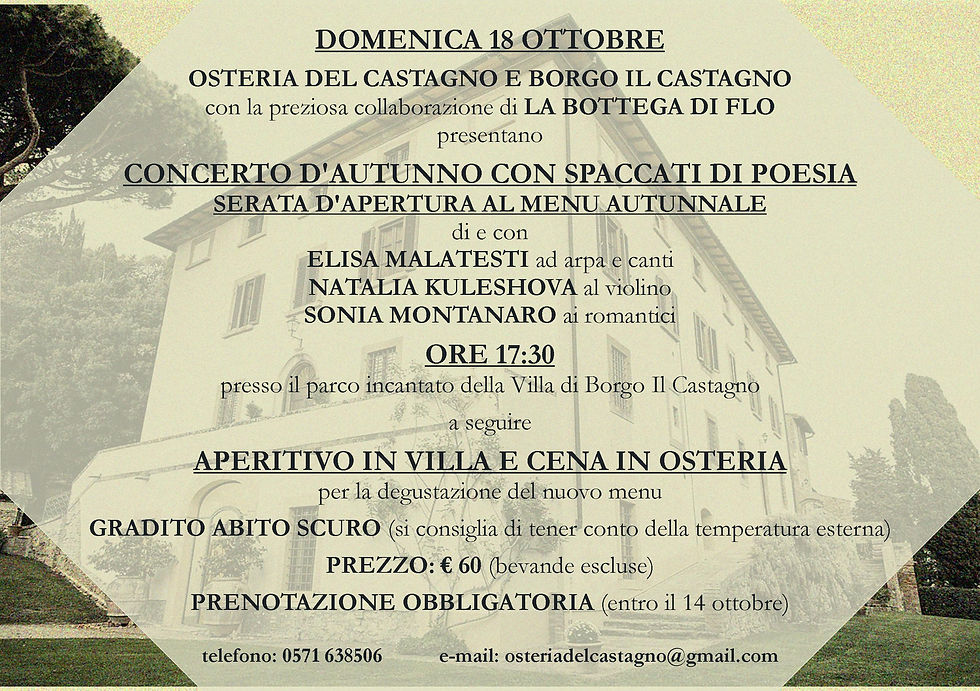 DOMENICA 18 OTTOBRE 2020 Concerto d'Autunno con spaccati di poesia RIMANDATO a data da destinarsilavolpeconillume12 ott 2020Tempo di lettura: 0 minAggiornamento: 31 dic 2020